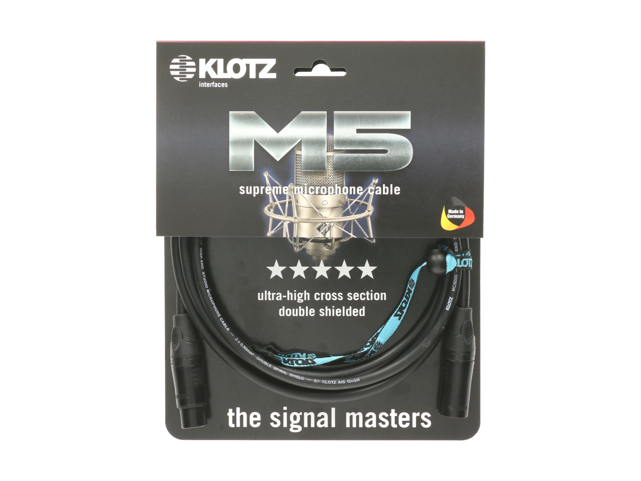 Csúcskategóriás mikrofonkábelként az M5 nem csupán veszteségmentes átvitelt biztosít hosszabb távokon, de az interferenciákkal szemben is páratlan védelmet nyújt kifinomult árnyékolásának köszönhetően – ez különösen fontos a stúdiómunka során. Ellentétes irányba tekercselt réz spirál árnyékolása gyakorlatilag 100%-os védelmet biztosít az interferenciákkal szemben. A professzionális mikrofonkábel a Klotzra jellemző minőségi kialakítással (0,5 mm2 vezeték keresztmetszet, 55 pF/m kapacitás) garantálja a kiváló felbontást és részletgazdag hangzást. Az extrudált PVC mag stabilitást nyújt a csavart vezeték szálaknak, biztosítja, hogy az M5 elég strapabíró legyen ahhoz, hogy károsodás nélkül eleget tegyen a 25000-es hajlítási ciklusnak.