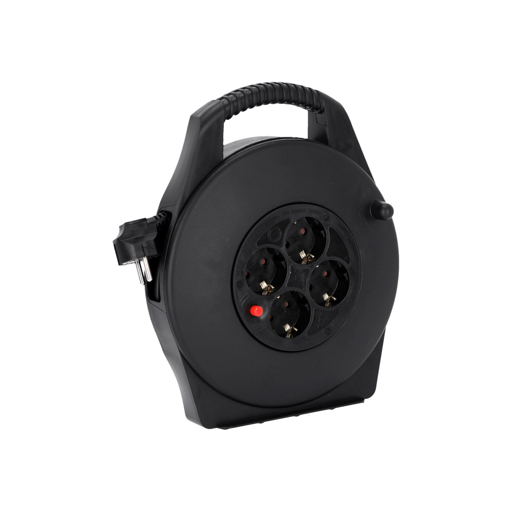 Az Adam Hall kicsi és kézreálló kábeldobja 10 m hosszú PVC köpenyű (H05VV-F) tápkábellel van szerelve és 3 x 1,5 mm² belső kábel keresztmetszettel rendelkezik.