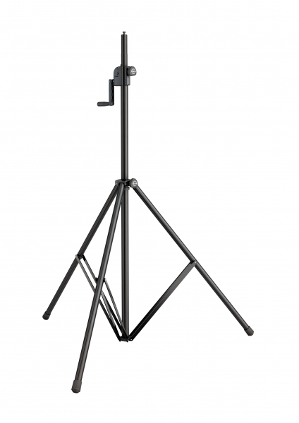 A König & Meyer kiváló minőségű alumínium világításállvány professzionális használatra készült. A magasságállítás 1755 és 3000 mm között kényelmes és biztonságos az »Auto Lock« reteszelőrendszerrel ellátott forgattyús mechanizmusnak köszönhetően. Az ergonomikus kezelés egyszerűnek és felhasználóbarátnak bizonyul. A robusztus állvány a stabilitásra és szilárdságra összpontosít, így a DIN 56950-3 szabvány szerinti 5°-os stabilitási teszt 35 kg-os teherbírással könnyen elvégezhető.