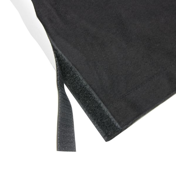 Átlátszatlan fekete szövet tűzálló anyaggal impregnálva (B1 a DIN 4102 szabvány szerint) 300 grammos minőségben. A szövet tépőzárral van ellátva, miáltal könnyen rögzíthető a dobogóra és bármikor ugyanolyan egyszerűen el is távolítható onnan.