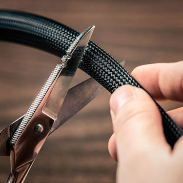 A polietilén-tereftalát szálak fizikai karakterisztikájának szabályozásával a Techflex mérnökei létrehoztak egy terméket, amely a PET kábelharisnyával megegyező specifikációkkal rendelkezik, hagyományos ollóval vágható és továbbra is megtartja a végek kiemelkedő kopásállóságát kémiai kötőanyagok vagy ragasztók használata nélkül.