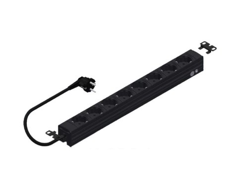 DI-STRIP típusú acélházas hálózati elosztó, 1 unitos házszélességgel, 2,5 m hosszú kábellel.