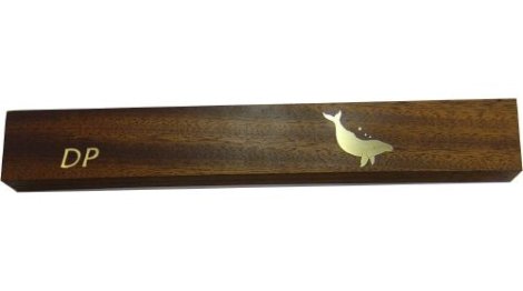 karmesteri pálcatok diófából, bálnát ábrázoló réz díszítéssel és monogrammal