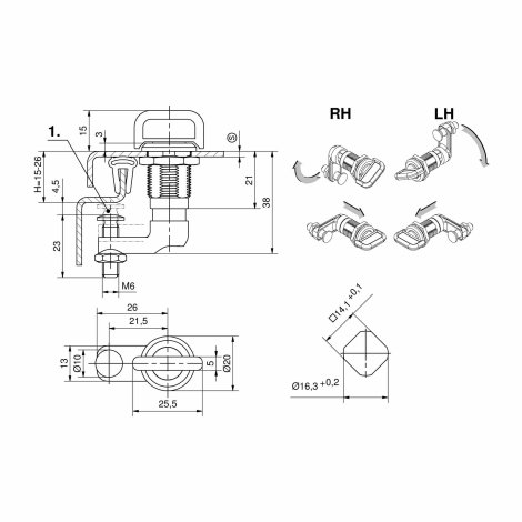 A betét 90°-os elfordításával a bütyök először zárt helyzetbe kerül.