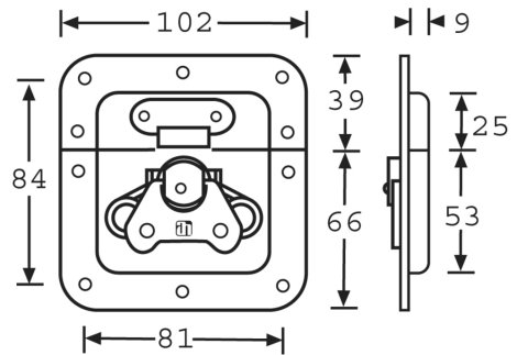Kisméretű pillangózár, közepes, 9 mm mély tálcába szerelve.