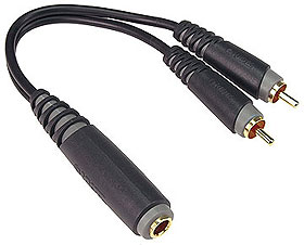 Klotz aranyozott 6,35/JACK2 aljzat - 2xRCA csatlakozók, + PCU201-Z fekete kábel,