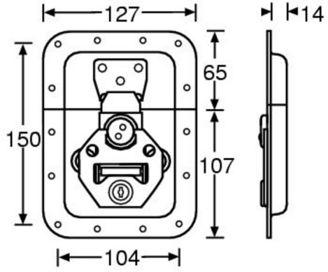 Adam Hall 17250 LS pillangózár, nagy, 14 mm mély tálcában, nyitó rugóval, kulcsos zárral