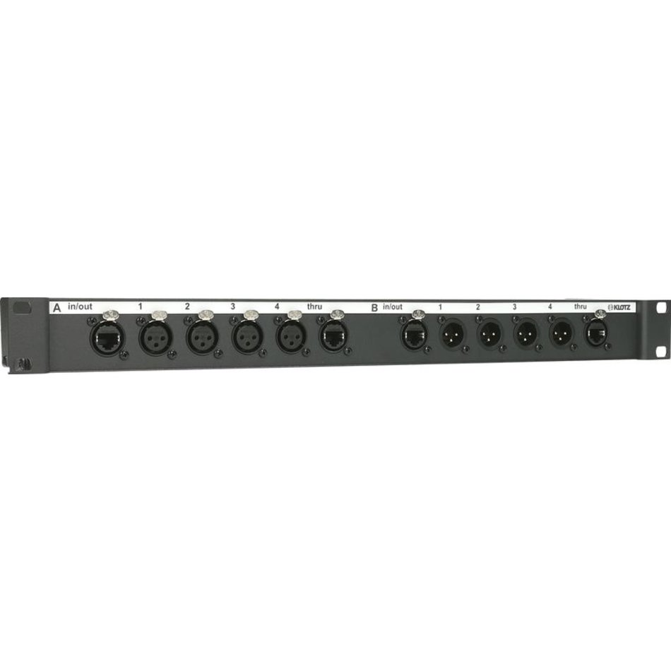 etherCON , 4-4 darab hárompólusú XLR papa - mama és 2 x párhuzamos 15-pólusú D-Sub csatlakozóval, 19"-1U/95 rack házban