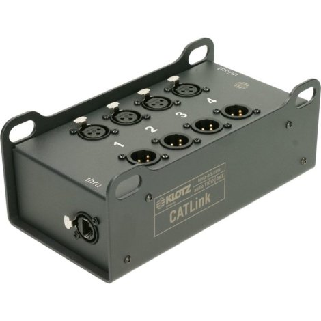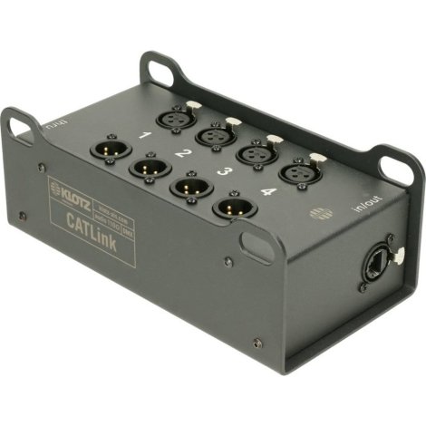 A Klotz CATLink termékek négy analóg jel (mikrofon, vonal), nyolc digitális audió jel (4 x AES/EBU), vagy négy DMX/MIDI jel átvitelére képesek akár 100 méteres távolságra teljes stabilitással árnyékolt adathálózati kábelen keresztül. A Klotz CATLink Truss stageboxok mindig megbízható társak a professzionális elvárások területén. A párhuzamos páronként kötött XLR csatlakozók (3-pólusú papa/mama, vagy 5-pólusú papa/mama) bemenetként és kimenetként egyaránt alkalmazhatók. Ez maximális rugalmasságot jelent a professzionális színpadi munkában, csökken a beszerelési és bontási idő. A CATLink Truss boxok számos feladatra megfelelnek kisebb stageboxtól a komplett csoportkábel rendszerekig. Ideális választás a jelek átvitelére a színpadtól a fő- vagy mellék keverőig és vissza. A strapabíró alumínium ház csúszásmentes gumilábakkal és lézergravírozott jelölésekkel van ellátva. A négy, biztosító zsinórhoz való nyílás és a Manfrotto Super Clamp számára kialakított M10-es menet egyszerűvé teszi a hídra és állványra való felszerelést. Teljes árnyékolású adathálózati kábel (Klotz RC5EE) használata ajánlott, ezzel biztosítható a négy különálló csatorna közös földelése