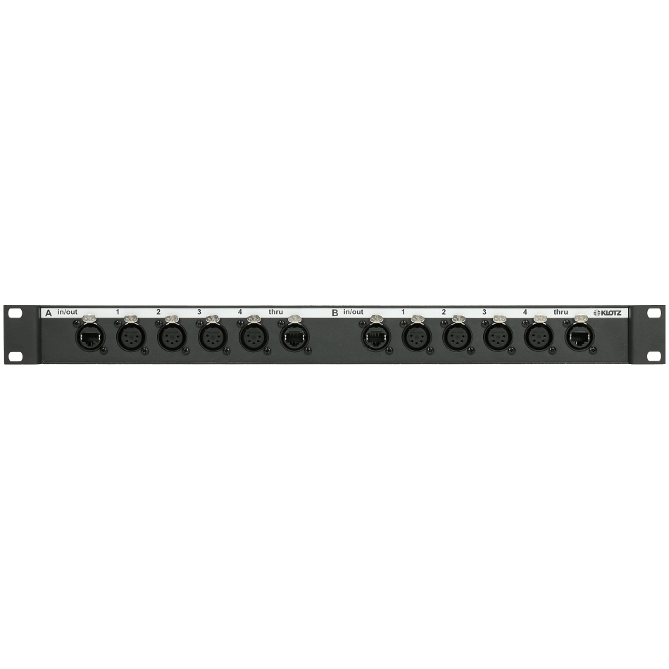 etherCON , 2x4 ötpólusú XLR mama és 2 x párhuzamos 15-pólusú D-Sub csatlakozóval, 19"-1U/95 rack házban