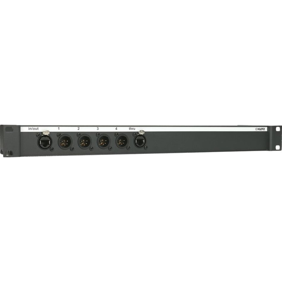 etherCON , 4 x ötpólusú XLR papa és párhuzamos 15-pólusú D-Sub csatlakozóval, 19"-1U/95 rack házban