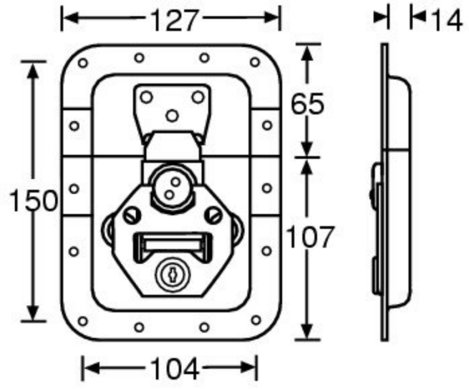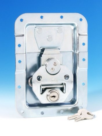 Adam Hall 17251 LS pillangózár, nagy, 14 mm mély profilhoz illeszkedő tálcában, nyitó rugóval, kulcsos zárral