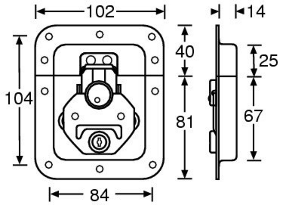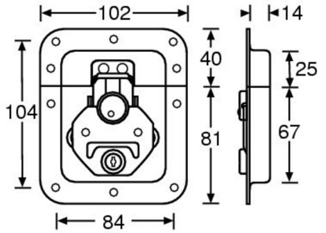 Adam Hall 17290 LS pillangózár, közepes, 14 mm mély tálcában, nyitó rugóval, kulcsos zárral