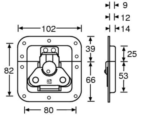 Adam Hall 17291 S pillangózár, közepes, 12 mm mély tálcában, nyitó rugóval
