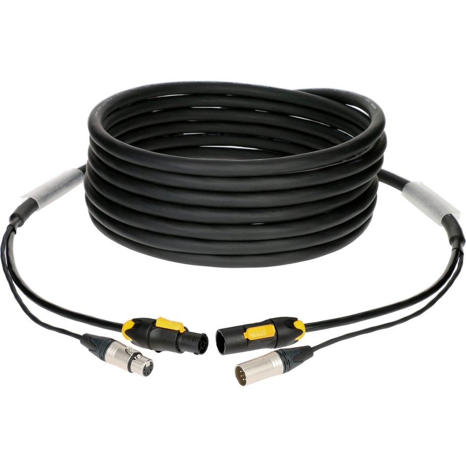 DMX és tápfeszültség hibrid kábel 5-pólusú XLR és powerCON TRUE1 csatlakozókkal