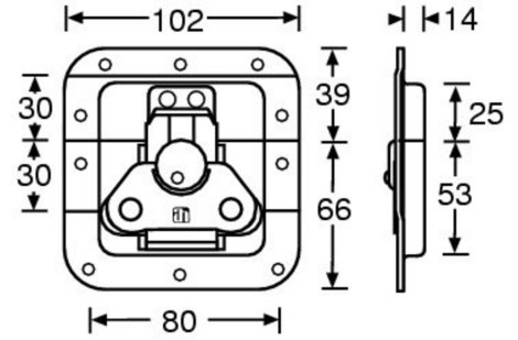 Adam Hall 17294 SP pillangózár, közepes, 14 mm mély, profilhoz illeszkedő tálcában, nyitó rugóval, lakatolható