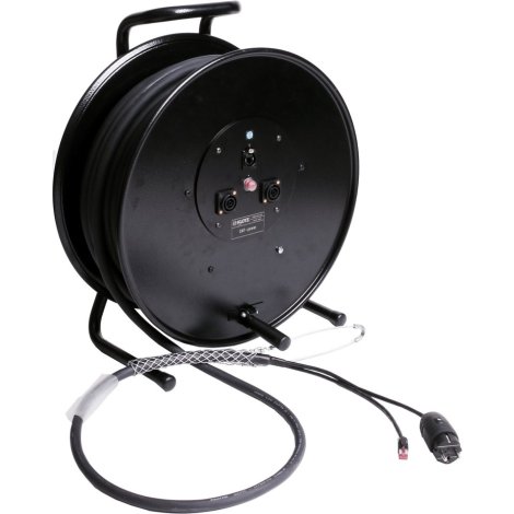 Hibrid kábeldob rendszer CAT kábellel és tápkábellel, RJ45 és Schuko/powerCON TRUE1 csatlakozókkal