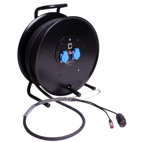 Hibrid kábeldob rendszer CAT kábellel és tápkábellel, etherCON és Schuko csatlakozókkal