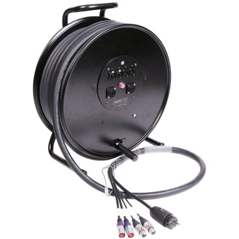Hibrid kábeldob rendszer 2 CAT, 2 audió/DMX és egy táp kábellel, etherCON, 5-pólusú XLR és powerCON TRUE1 / Schuko csatlakozókkal