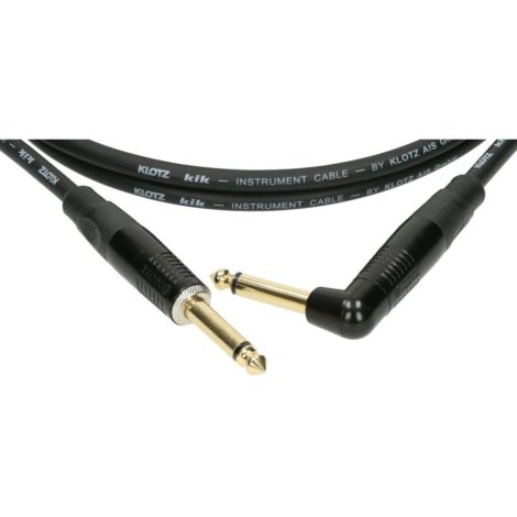 Klotz KIKKG1.5PPSW – pro hangszerkábel Klotz fekete, aranyozott egyenes és pipa jack csatlakozókkal, 1,5 m