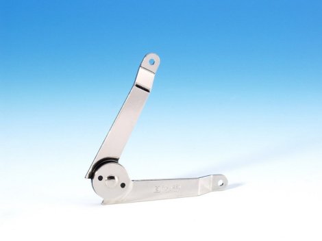 kitámasztó zsanér, nagyméretű, profilhoz illeszkedő, stop funkciós, szegecsvédő tálcában, cinkezett