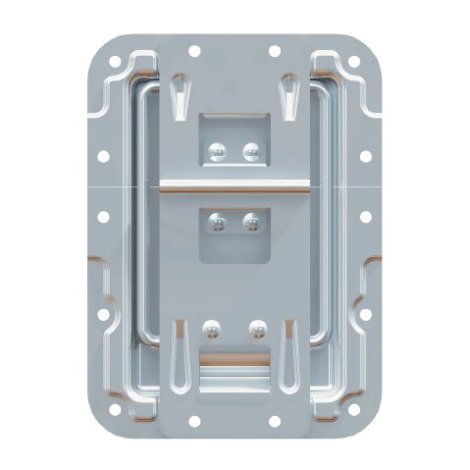 kitámasztó zsanér, nagyméretű, profilhoz illeszkedő, stop funkciós, szegecsvédő tálcában, cinkezett