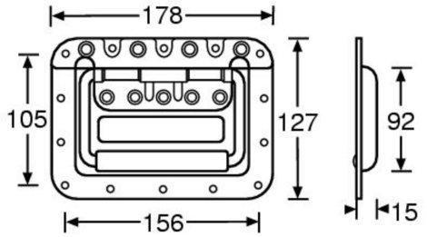 hordláda fül cinkezett, rugós,178x127x14 mm, fekete