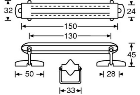 táskafül fekete műanyag, nikkelezett szerelékekkel, 180x65 mm