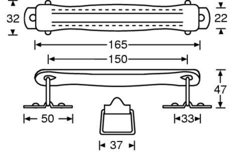 táskafül fekete bőr, nikkelezett szerelékekkel, 166x47x32 mm