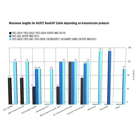 A Klotz vásárlóinak külön kérésére tervezett hibrid kábel két Klotz RC5SB specifikációval rendelkező hálózati (RAMCAT5) kábelt, két digitális audió kábelt és egy tápfeszültség csatlakozást egyesít. Ez az univerzális multicore kábel otthon van minden audió hálózatban és DMX világítás szabályzó alkalmazásokban. A masszív RC5SB kábelek 0,52 mm átmérőjűek és alacsony jelveszteségűek, akár 100 méter távolságú hálózatokhoz is használhatók. Az adatkábelek fólia árnyékolással és jó fedést biztosító rézfonattal rendelkeznek. A két audió kábel impedanciája 110 Ohm, ez biztosítja, hogy a kábel analóg/digitális audió jelek, valamint DMX rendszerek vezérlőjelének továbbítására egyaránt alkalmas legyen. A tápfeszültség triplafonatú kábeleinek átmérője 2,5 mm, ez további lehetőségeket nyújt a hibrid kábel széleskörű felhasználásához.