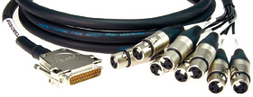 8 csatornás, D-Sub25M - 8xNeutrik XLR3F csatlakozók + PW08 fekete csoportkábel