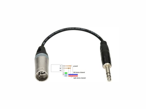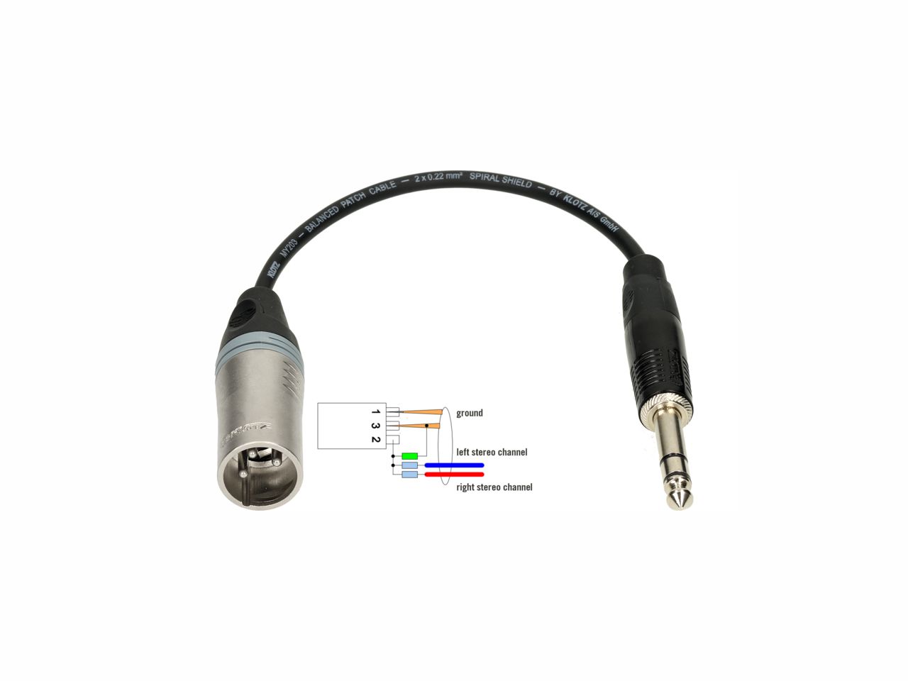 sztereó-monó illesztő adapter ellenállás mátrixszal, 6,3/JACK3 - Klotz XLR3M csatlakozók, + MY206 fekete kábel