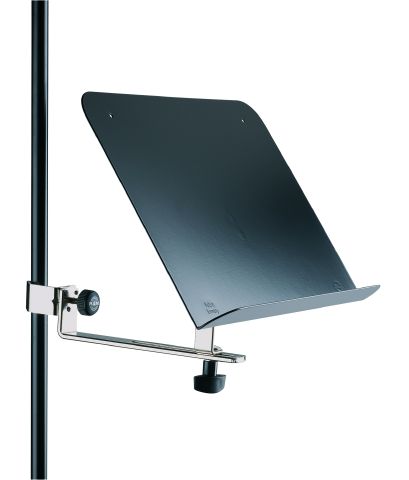 Nagy acél kottatartó acél toldókarral, amelyet függőleges állványrúdra lehet rögzítenii.