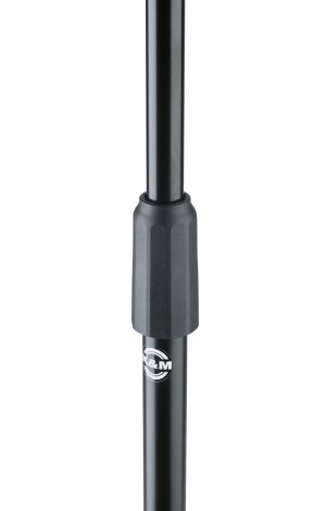 Egymásra helyezhető zenekari kottaállvány fokozatmentes magasságállítással (súrlódási zárral). A 750 mm-től 1280 mm-ig terjedő magasság beállításához a csőkombinációt egyszerűen széthúzzuk vagy összetoljuk. Nagyméretű, 2,5 kg-nál nehezebb kották esetén a magasság a szorítóhüvely meghúzásával további rögzítésre kerülhet.