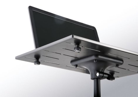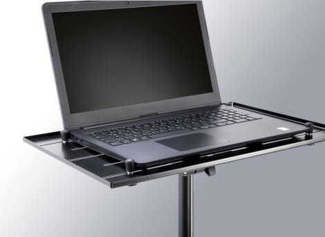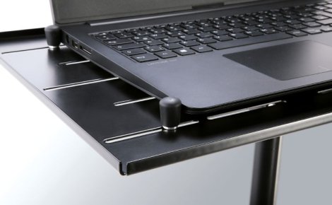 A laptop állvány stabilitást és biztonságot nyújt. A bőséges helyet kínáló tálca minden általánosan használt laptop méretéhez megfelel.