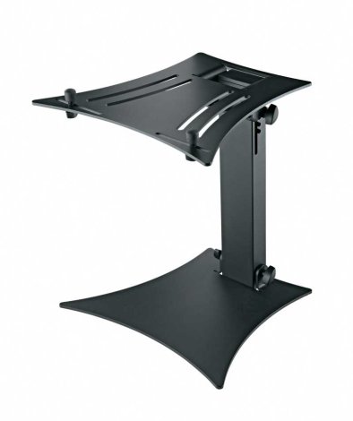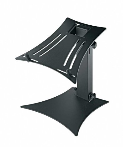 A robusztus acélcső konstrukció és a dekoratív alumínium talp csekély súlyának ellenére kiváló stabilitást biztosít. A külön állítható gumírozott támasztó csapok alkalmassá teszik minden általános laptoppal, keverővel CD játszóval és egyéb készülékkel való használatra.