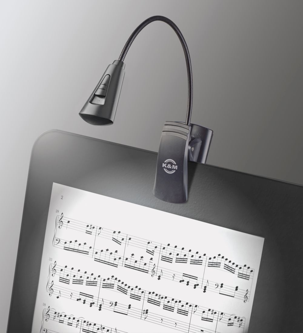 Kisméretű és sokoldalú lámpa hajlítható gégenyakkal. A strapabíró LED-ek 100000 órás élettartamra vannak hitelesítve. A praktikus és extra nagy átfogású (akár 25 mm) csíptető kottapultra, asztallapra, stb. rögzíthető. Akár állólámpaként is használható. Kompakt kialakítású és egyszerűen használható.