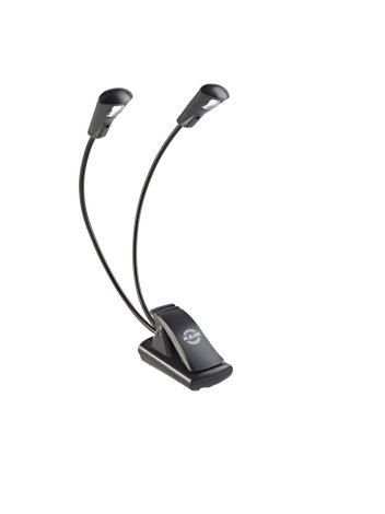 Kisméretű és sokoldalú dupla fejes lámpa két hajlítható gégenyakkal, mindkét fejben egy strapabíró LED-del. A két LED egymástól függetlenül kapcsolható és 100000 órás élettartamra vannak hitelesítve. A praktikus és extra nagy átfogású (akár 25 mm) csíptető kottapultra, asztallapra, stb. rögzíthető. Akár állólámpaként is használható. A gégenyakak könnyen összehajthatók.