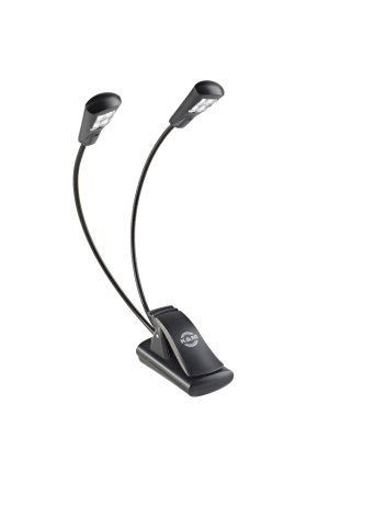 Nagy teljesítményű és sokoldalú dupla fejes lámpa két hajlítható gégenyakkal, amellyel egy pontra fókuszálható, vagy nagyobb területre irányítható a fény. A négy nagy teljesítményű LED 100000 órás élettartamra van hitelesítve, mindkét fej két fényerőszintre kapcsolható. A korszerű LED technológia nagy fényerőt és minimális fogyasztást garantál. A praktikus és extra nagy átfogású (akár 25 mm) csíptető kottapultra, asztallapra, stb. rögzíthető. Akár állólámpaként is használható. A gégenyakak könnyen összehajthatók.