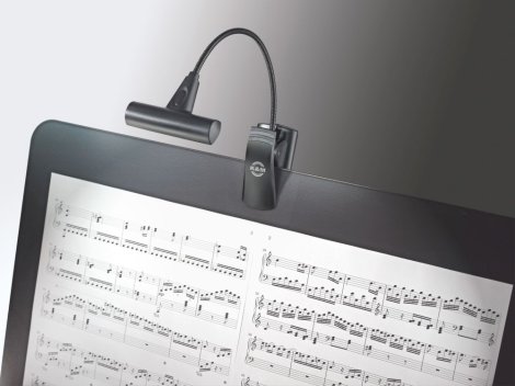 A nagy teljesítményű T-modell lámpa fényes megvilágítást biztosít 8 darab 100000 órás élettartamra hitelesített LED-jével. Két beállítható fényerő szintjével és hajlékony gégenyakával kényelmes és sokoldalú, minden világítási igényt kielégítő szolgáltatást nyújt. A praktikus és extra nagy átfogású (akár 25 mm) csíptető kottapultra, asztallapra, stb. rögzíthető. Akár állólámpaként is használható.