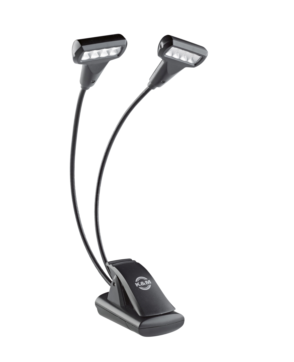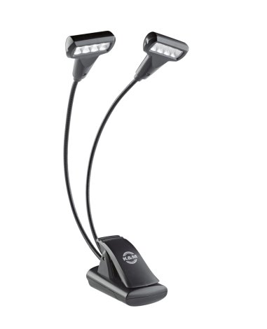 Az erőteljes és többfunkciós duplafejű gégenyakas lámpa lehetővé teszi, hogy a zenész egy pontra fókuszálva, vagy nagyobb területet bevilágítva használja. Kényelmesen és sokoldalúan alkalmazható a legtöbb helyzetben, köszönhetően a két fejben lévő 4-4 (100000 óra élettartamú) erős LED-nek és külön fényerő (2 fokozat) szabályzásnak. A kellemes meleg fény 3000 K színhőmérsékletnek felel meg. A legújabb LED technológia intenzív fényforrást és minimális energiafelhasználást garantál. A praktikus csíptető kottapulton és asztallapon is rögzíthető 25 mm vastagságig.