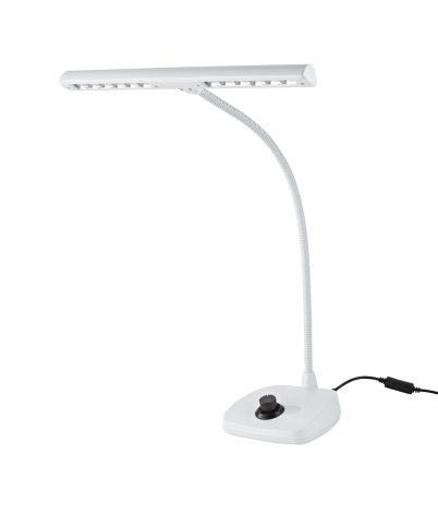 Elegáns megjelenésű zongoralámpa. A legmodernebb LED technológia kellemes meleg fehér színt (3000 K, 12 LED, 2500 lux), hosszú élettartamot és alacsony energiafelhasználást garantál. A megvilágítást fényerőszabályzóval állíthatjuk be. A hosszú és hajlékony gégenyak (415 mm) segítségével könnyen megtalálható az ideális pozíció. A súlyos talp stabil elhelyezést tesz lehetővé. Hálózati adapter mellékelve.