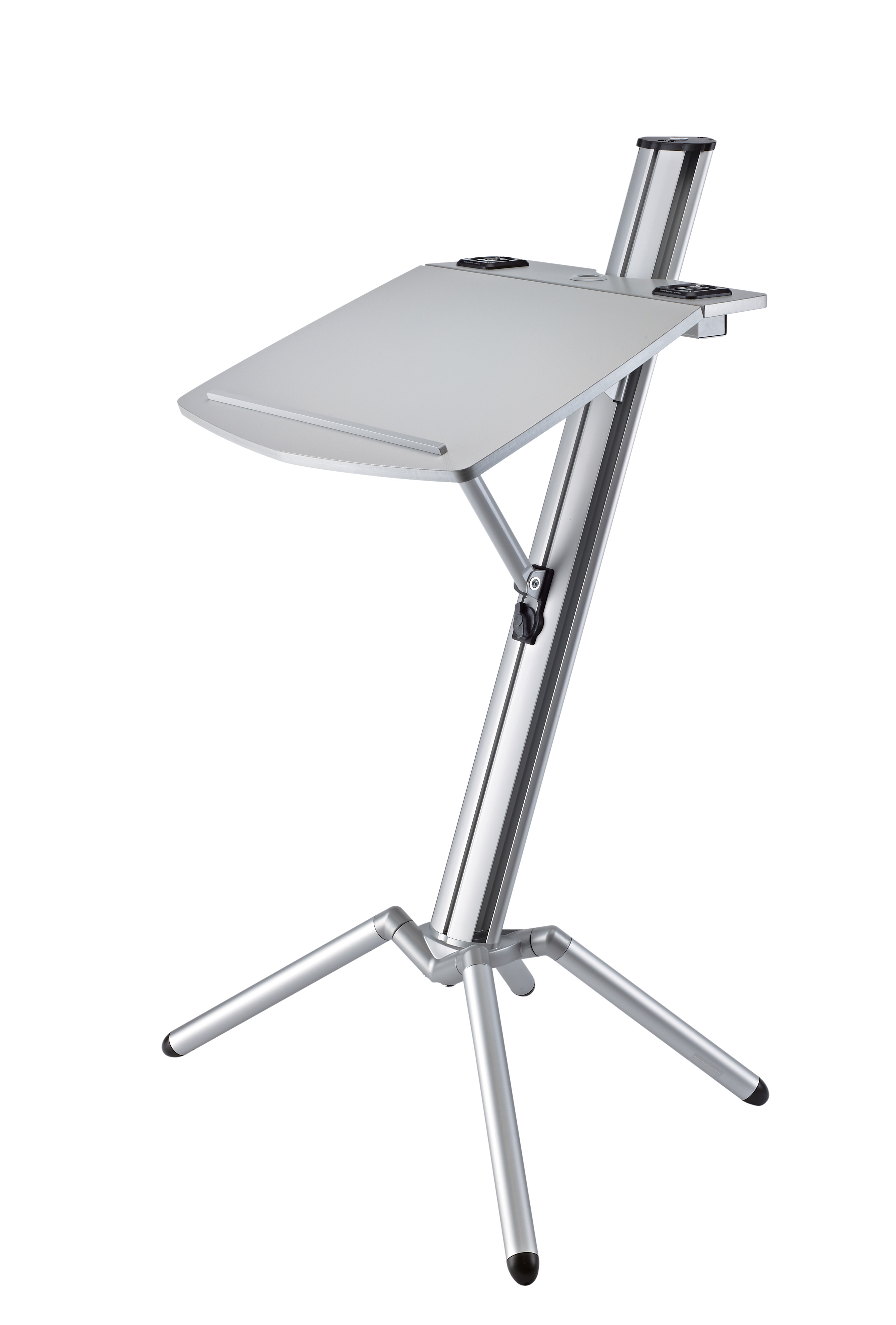 Stabil, döntött, extrudált alumíniumból készült oszlop megemelt lábakkal (nagy lábtér). Elegáns kézirattartó dönthető alumínium felülettel és fékezősínnel. A magasság és a dőlésszög egymástól függetlenül állítható. Elegáns kábelvezető csatorna kábelszorítóval. Két darab hárompólusú, akusztikailag szigetelt XLR mikrofon aljzat gégecsöves, vagy egyéb könnyű mikrofonhoz (nincs a csomagban).