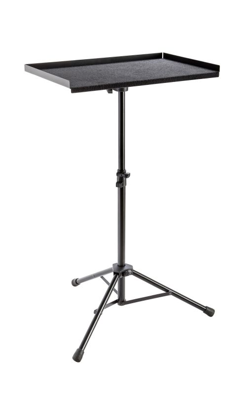A stabil és praktikus ütőhangszer állvány által biztosított hely több mint elég különféle tartozékok számára. A nagy és masszív acél tálca pereme egyik oldalon nyitott, a felületét zajcsökkentő filc borítja. Szállításhoz a tálca egyszerűen, szerszámok nélkül levehető. A háromlábú állvány kedvező méretűre összecsukható.