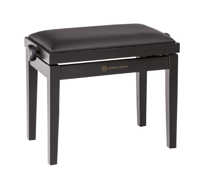 Komplett zongoraszék tömör európai bükkfából, négy rétegű matt fekete poliészter lakkozással. Stabil lábak csúszásmentes gumi végekkel. Kettős kereszttartó mechanizmus a könnyű és precíz magasságállítás érdekében. Masszív ülőpárna MDF anyagból fekete műbőr borítással. Lapra szerelve szállítják, egyszerűen összerakható.