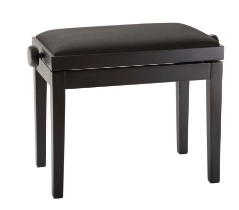 A tömör európai bükkfából készült zongoraszék mattfekete lakkozást kapott. Az 520 x 300 mm méretű masszív ülőlap fekete bársony borítással készült. A lábak csapolással és ragasztással vannak rögzítve, a végükön csúszásmentes gumi található. Az ülőlap magassága 480 mm és 580 mm között állítható.