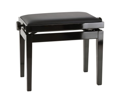A tömör európai bükkfából készült zongoraszék magasfényű fekete lakkozást kapott. Az 520 x 300 mm méretű masszív ülőlap fekete műbőr borítással készült. A lábak csapolással és ragasztással vannak rögzítve, a végükön csúszásmentes gumi található. Az ülőlap magassága 480 mm és 580 mm között állítható.