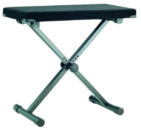 Széles zongorapad erős acélcső lábbal, állítható magassággal, billegésmentes kialakítás, szállításhoz összecsukható, fekete műbőr-, vagy erős szövetborítással. Ülőlap mérete 650 x 300 mm.