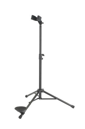 Továbbfejlesztett kivitelű fagottállvány. A nagy, gumival bevont tartócsésze stabilitást biztosít, az új támasztókeret szélessége és dőlése állítható, a levehető gumipárnák cseréjével a hangszerhez igazítható. A védőfilc és a gumi lábvég K&M minőségi szabvány szerinti.