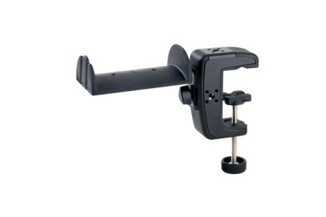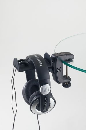 Az új, asztali rögzítő mechanizmussal ellátott fejhallgató-tartó biztonságos és kényelmes tárolást tesz lehetővé. A puha felületű tartóelem két fejhallgató elhelyezésére alkalmas, az elején lévő bevágások további két fülmonitor részére kínálnak helyet. A fejhallgató-tartó négy különböző pozícióban rögzíthető a rögzítő csavar segítségével, ezen kívül minden állásban elforgatható 90 fokkal. A rögzítő elem 0-53 mm átfogásra képes, így az asztalok széles választékára felszerelhető. Az erős fém kivitel gumi betétekkel garantálja a fix elhelyezést. A rögzítő felület kialakítása lehetővé teszi a sík, illetve ívelt (cső) felületre való rögzítést is.